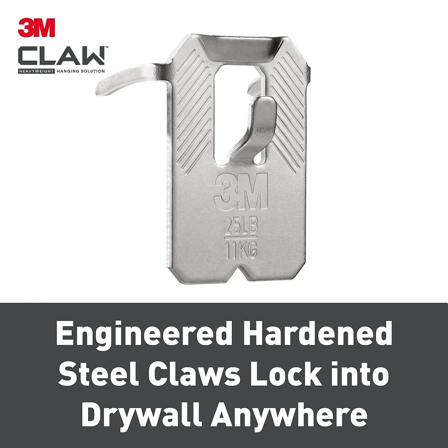 Trust your heavyweight hanging projects to the 3M™ CLAW™ Drywall Picture Hanger proven to hold up to 11 kg. The engineered hardened steel claws lock securely into drywall anywhere – just push, hang and you’re done.