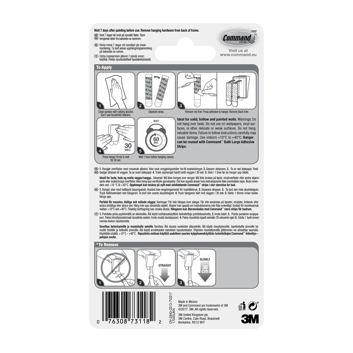 Command Jumbo Canvas Hanger is our innovative solution for hanging canvas prints, paintings and decorations securely and damage free. It holds strongly and removes cleanly using 3M stretch-release technology.