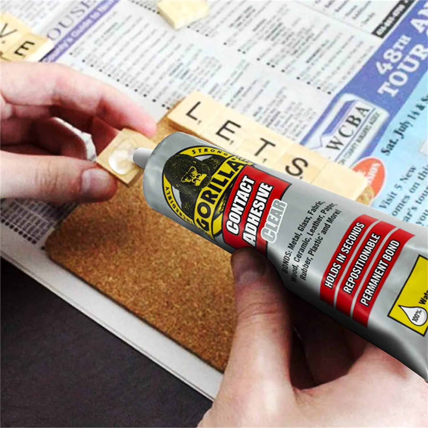 Gorilla Contact Adhesive Clear is repositionable and dries crystal clear, making it the perfect all-purpose glue.