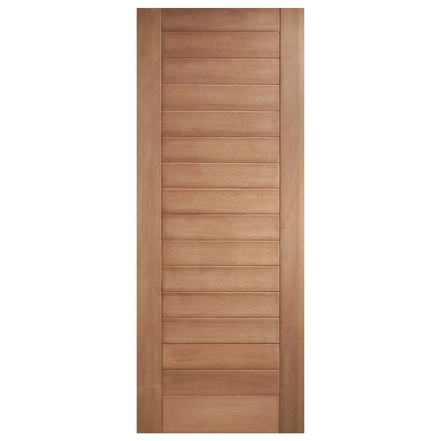 A bold, contemporary external door in hardwood, the Hayes offers a great mix of quality and style for a modern home. Featuring sixteen horizontal panels, the overall effect is clean and minimal. Creating a focal point for the front of your property that’s sure to impress. An imposing look in unfinished hardwood, you have the flexibility to choose its final finish.