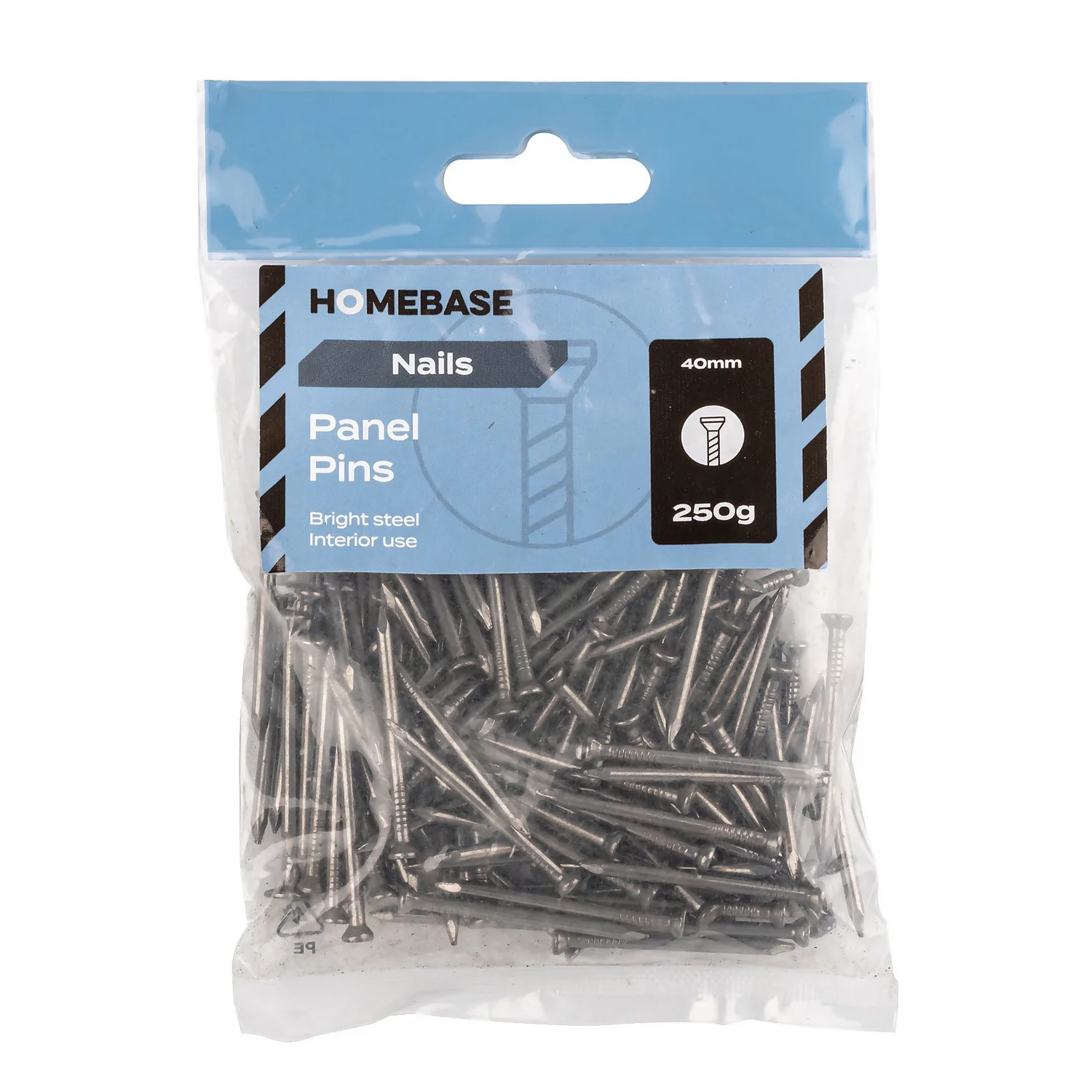 This 250g pack of Panel pins are 40mm in length and have a 2.65mm diameter with no need for pre-drilling.
