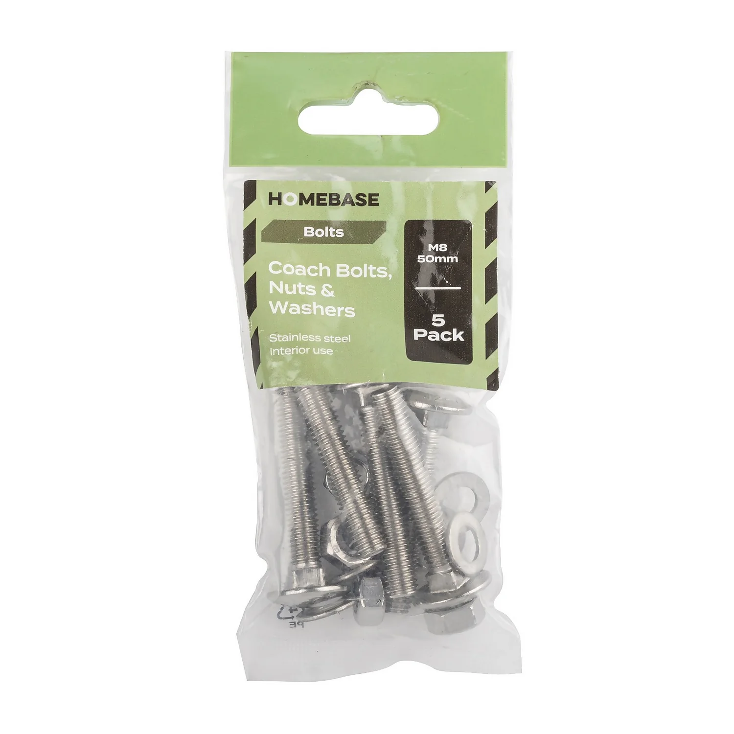 This 5 pack of Coach bolts are 50mm in length and have a 8mm diameter.