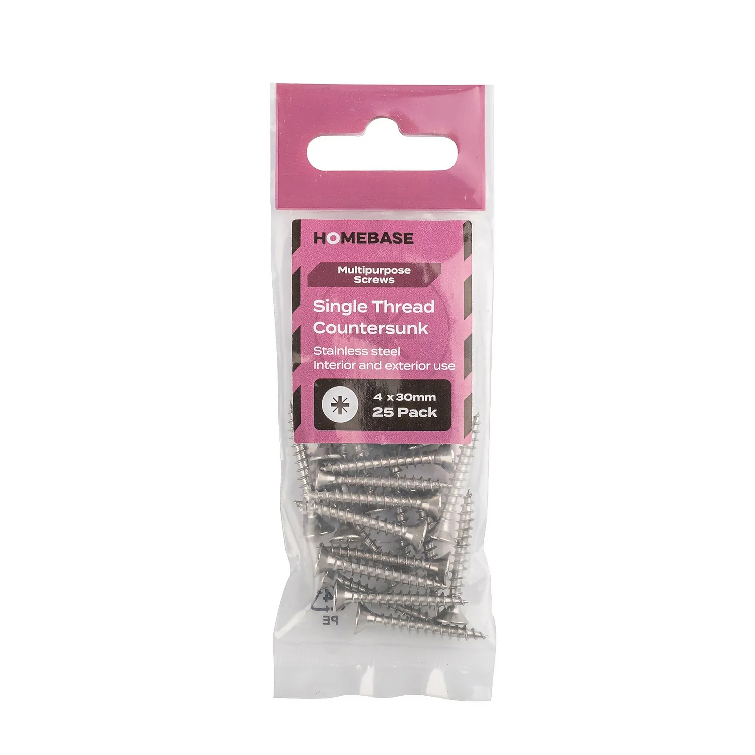 Homebase Stainless Steel Single Thread Screw 4 X 30mm 25 Pack