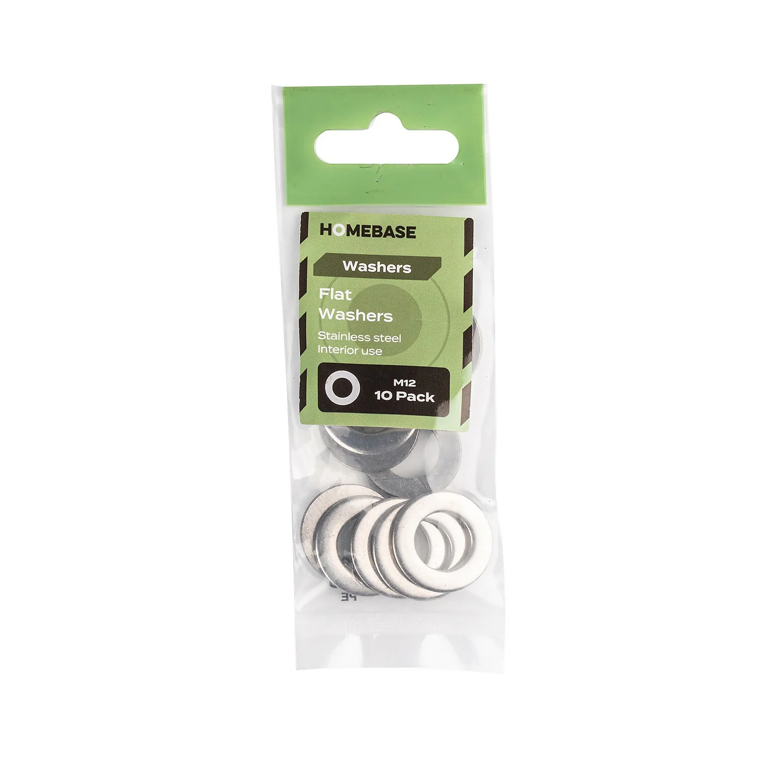 This 10 pack of Washers are 12mm and provide a larger bearing surface, spreading the load of screwed fastening to prevent damage to the surface.