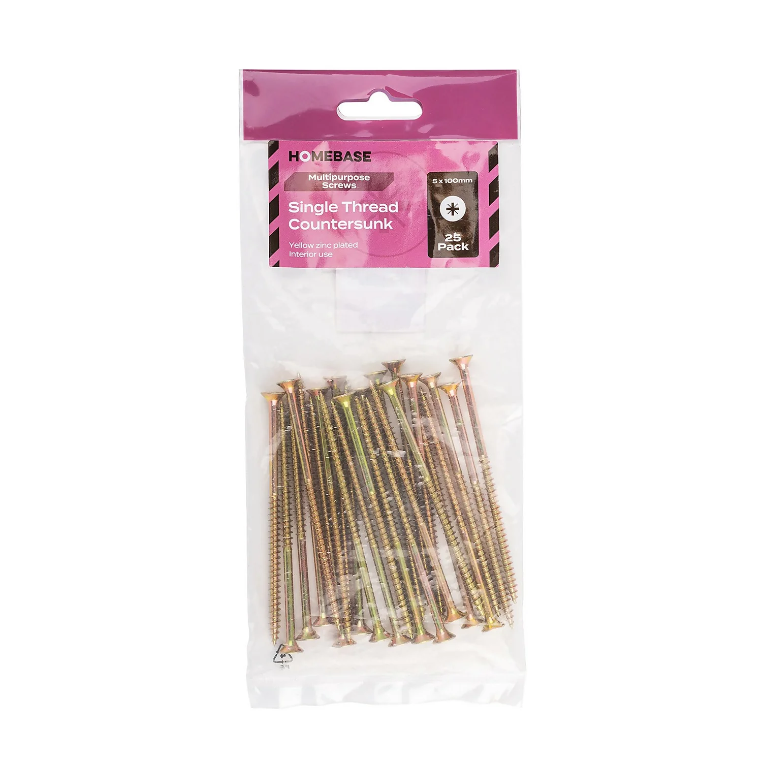This 25 pack of Single thread countersunk screws are 100mm in length and have a 5mm diameter. A quality single thread multi-purpose screw is ideal for fixing into a variety of substrates including all Wood types.