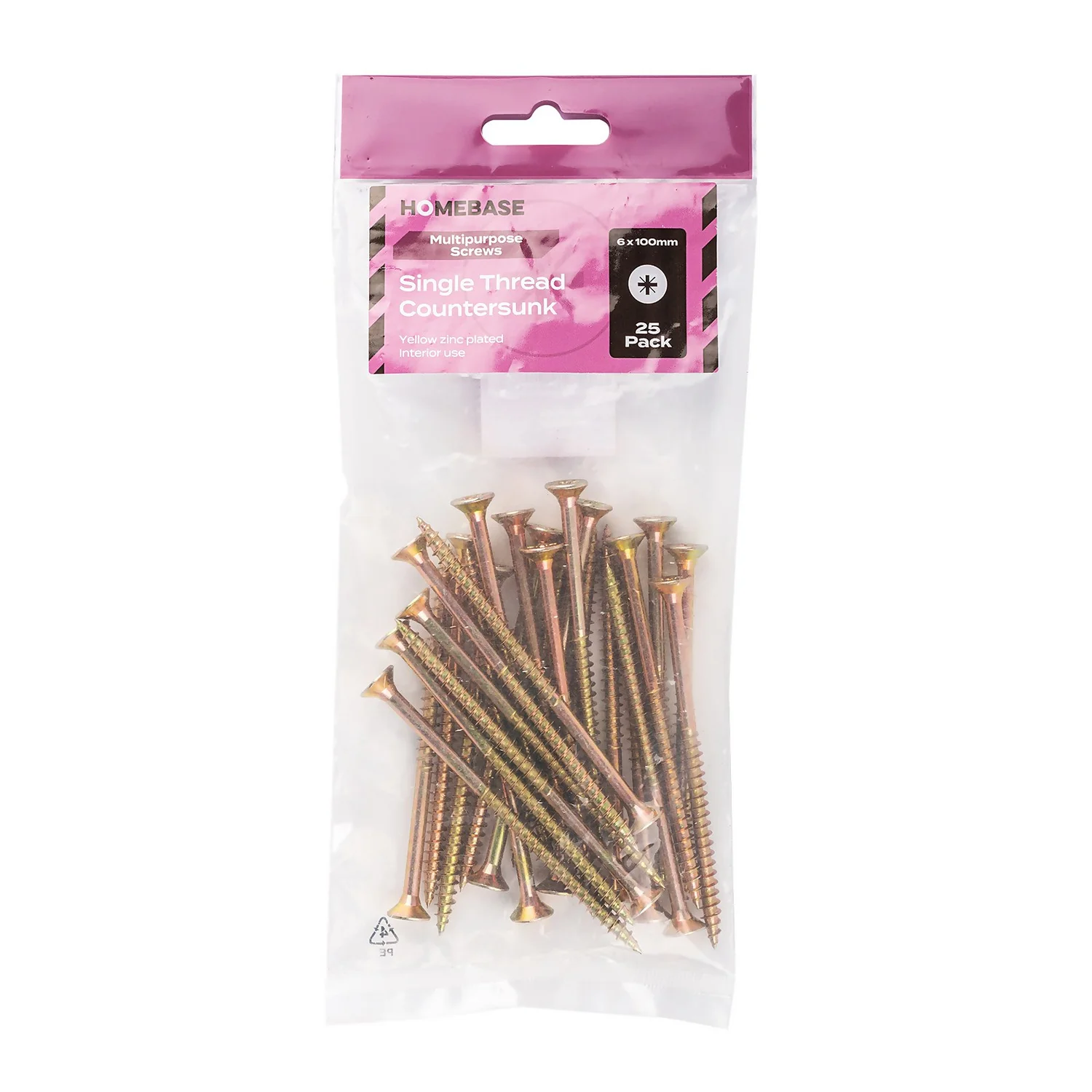 This 25 pack of Single thread countersunk screws are 100mm in length and have a 6mm diameter. A quality single thread multi-purpose screw is ideal for fixing into a variety of substrates including all Wood types.