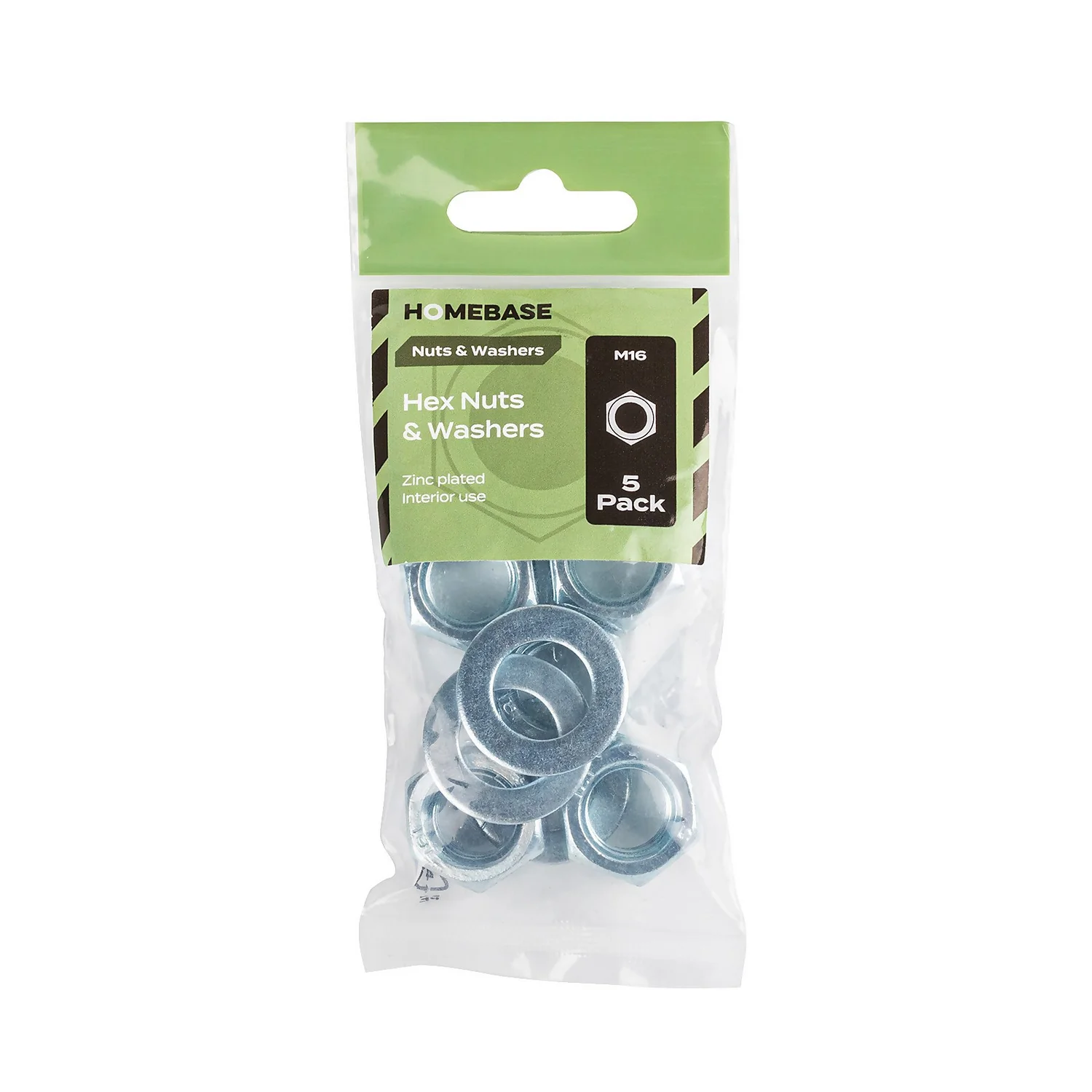 This 5 pack of Hex nuts are 16mm, they are a common hexagonal fastener that has internal threads that screw on to the shank of a bolt or a hex cap screw.
