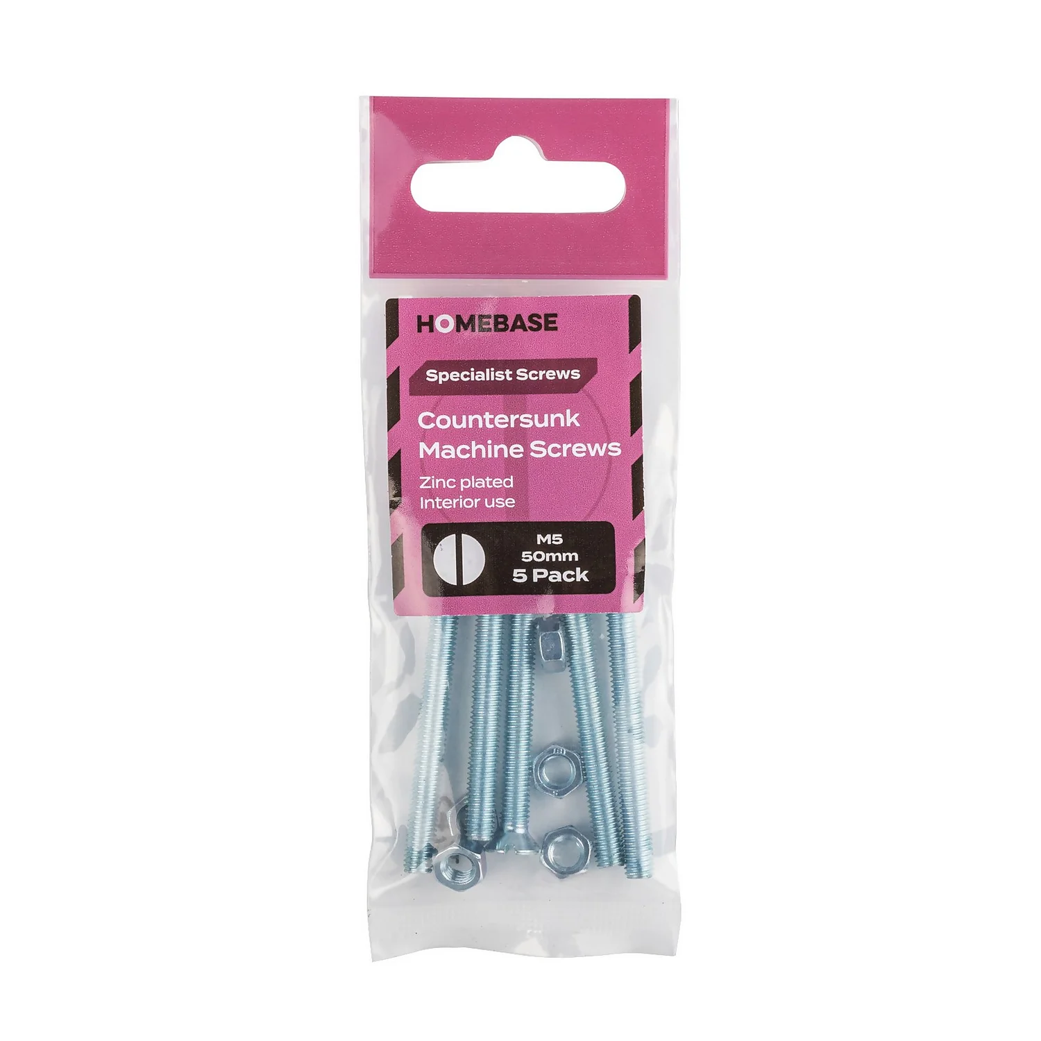 This 5 pack of Machine screws are 50mm in length and have a 5mm diameter. Used in metal to metal applications where holes are pre-drilled.