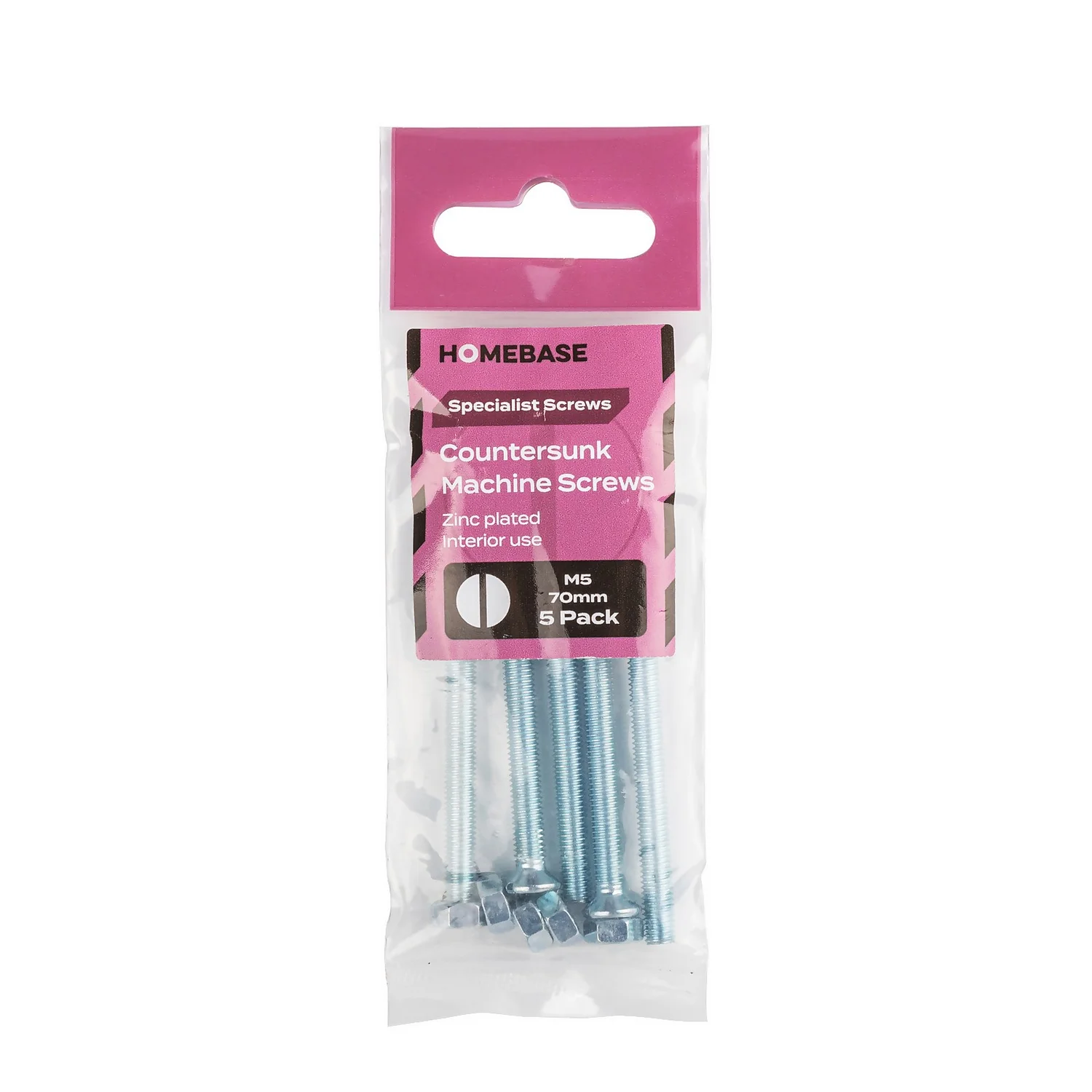 This 5 pack of Machine screws are 70mm in length and have a 5mm diameter. Used in metal to metal applications where holes are pre-drilled.