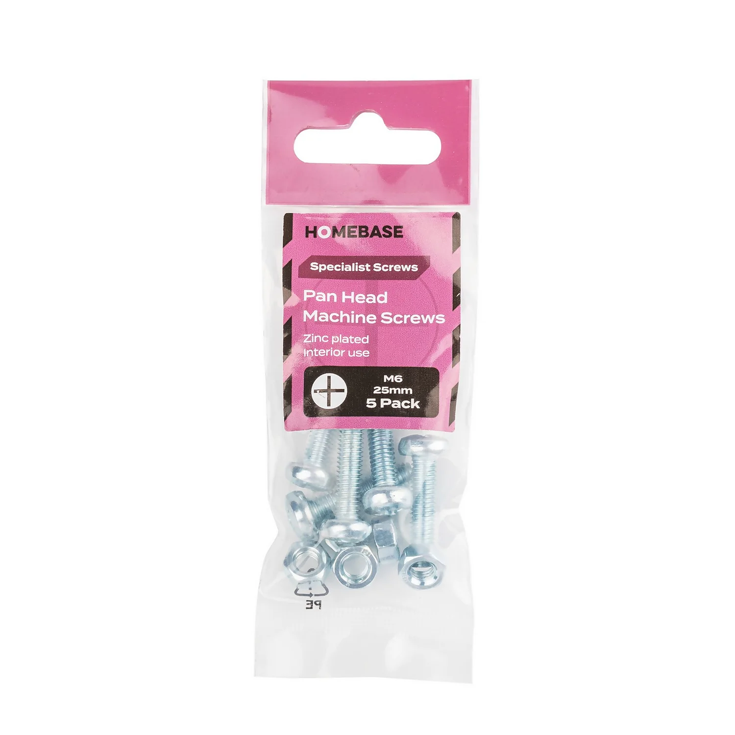 This 5 pack of Machine screws are 25mm in length and have a 6mm diameter. Used in metal to metal applications where holes are pre-drilled.