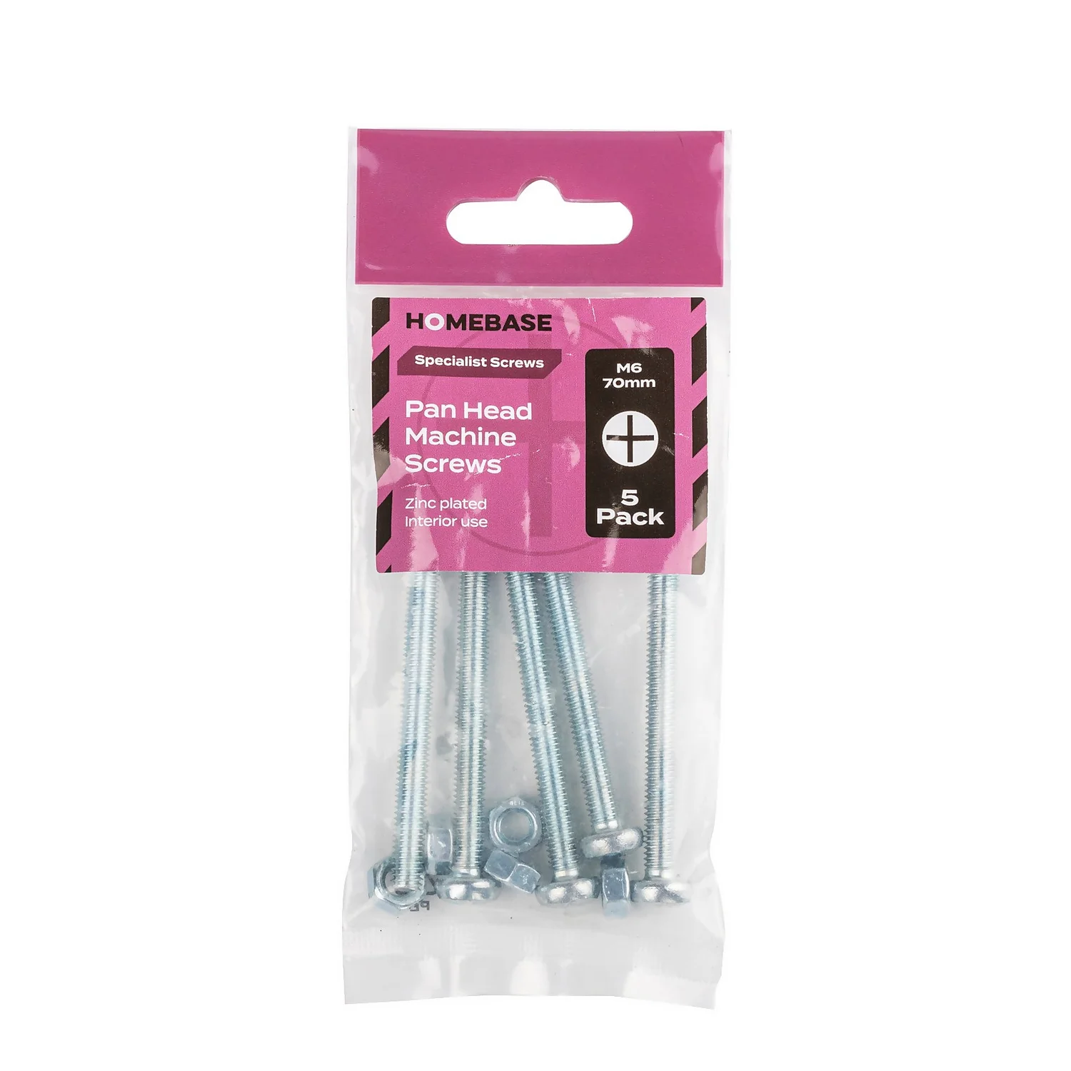 This 5 pack of Machine screws are 70mm in length and have a 6mm diameter. Used in metal to metal applications where holes are pre-drilled.