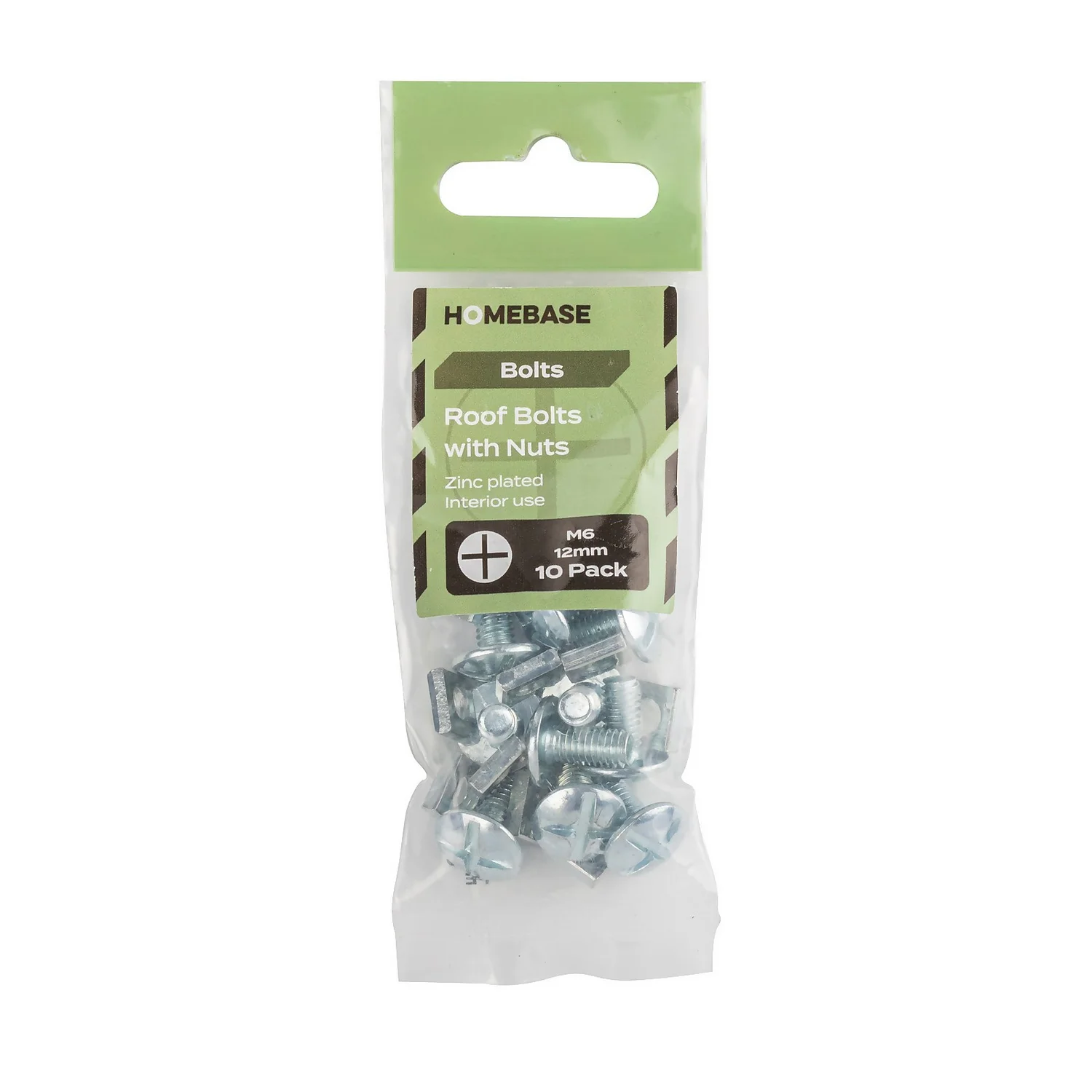 This 10 pack of Roof bolts are 12mm in length and have a 6mm diameter. A general purpose bolt completed with square nut, ideal for fastening roofing, guttering and many other applications.