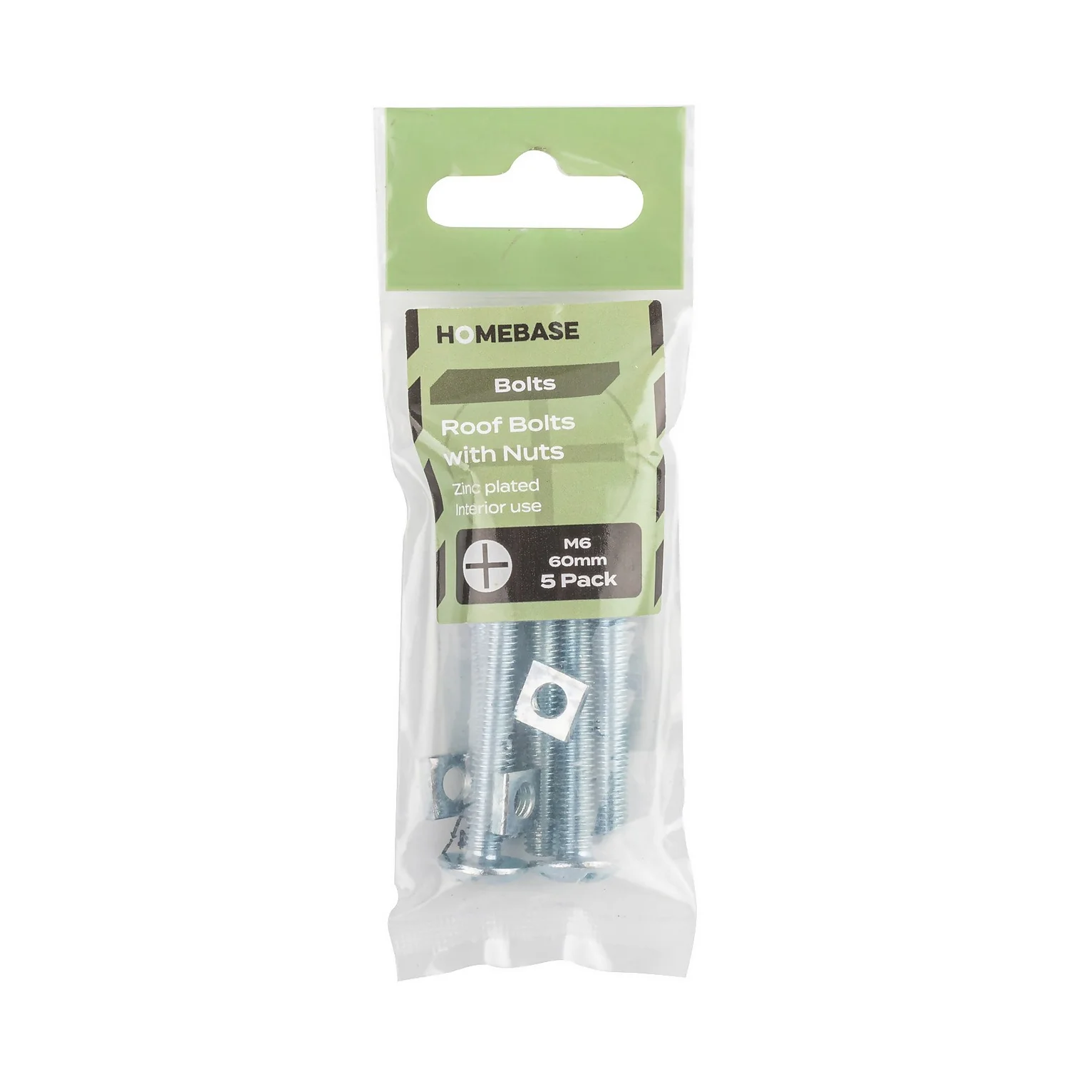 This 5 pack of Roof bolts are 60mm in length and have a 6mm diameter. A general purpose bolt completed with square nut, ideal for fastening roofing, guttering and many other applications.
