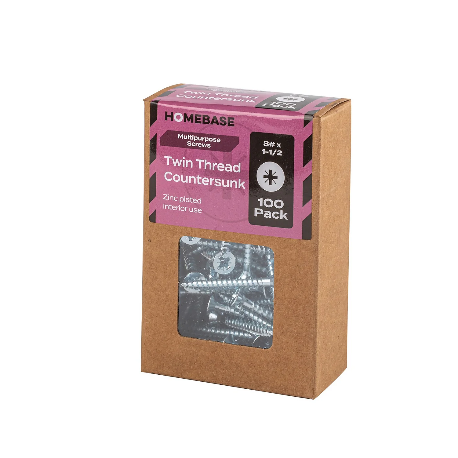 Homebase Zinc Plated Twin Thread Screw 4 X 40mm 100 Pack