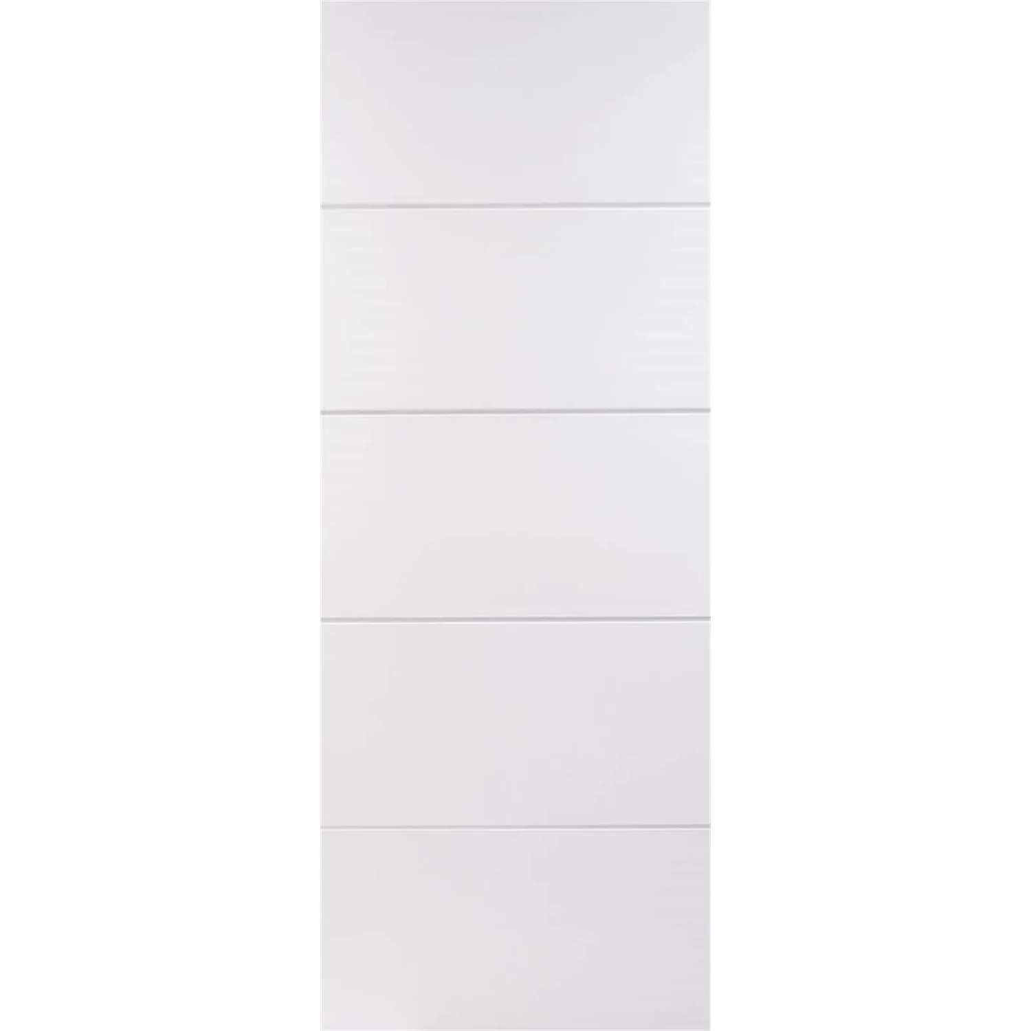 An ultra modern moulded design in white, this internal door will finish a contemporary space to perfection. With the look of five panels, it’s simple and stylish, as well as a great budget option. Whether you’re giving a property a modern update or completing a room, this versatile option will work for a bedroom, bathroom, living room or kitchen.