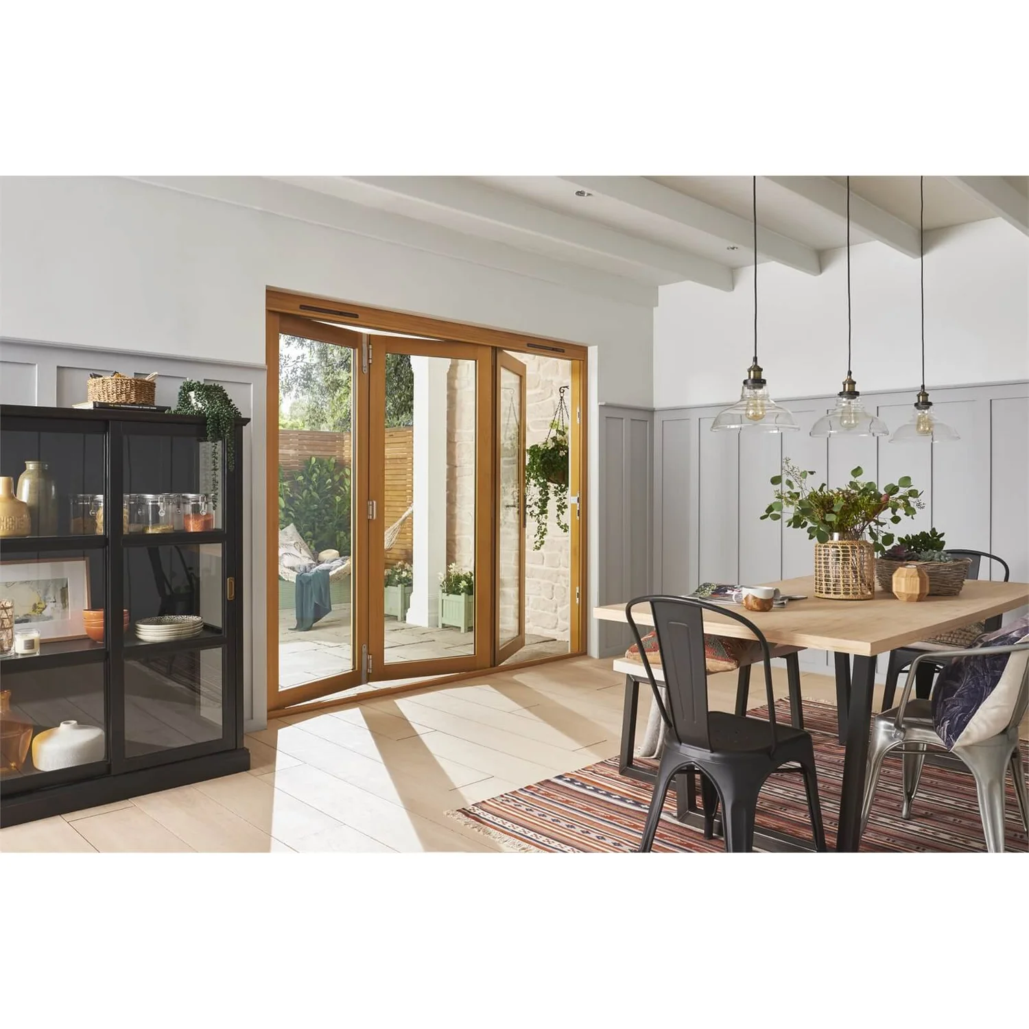 The Kinsley folding patio doorset lets you enjoy the best of both worlds by bringing the outside in whilst keeping the outside elements at bay – keeping you warm in the winter. Featuring a top hung tracking system, they open and close with ease at your fingertips. The doorset is fully finished in a natural golden oak stain to give a true premium appeal to your exterior decor.