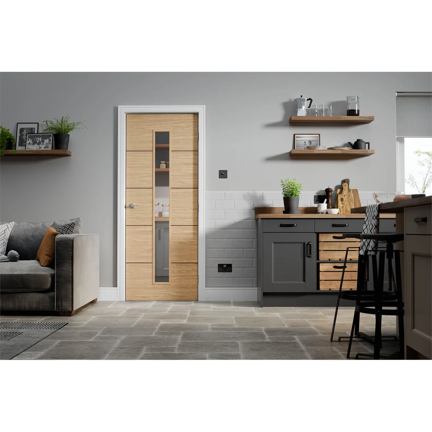 Our oak interior doors will give your space a smart new look that goes with so many interior colour palettes for maximum versatility. With a range of hardware to choose from, you can add the handles you love to your Lille door, too.