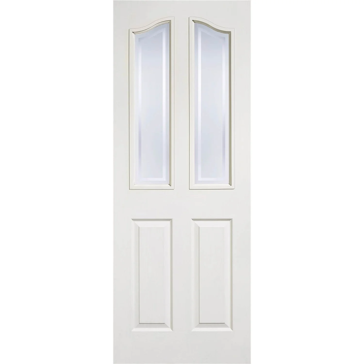 Traditional look white primed door in a cost-effective moulded design. With two frosted glazed panels finished with clear lines, for attention to detail at a great price. This door is an ideal option when it comes to keeping a space light, while the frosting maintains privacy, so it can be fitted in a bathroom, study or kitchen, the choice is yours.