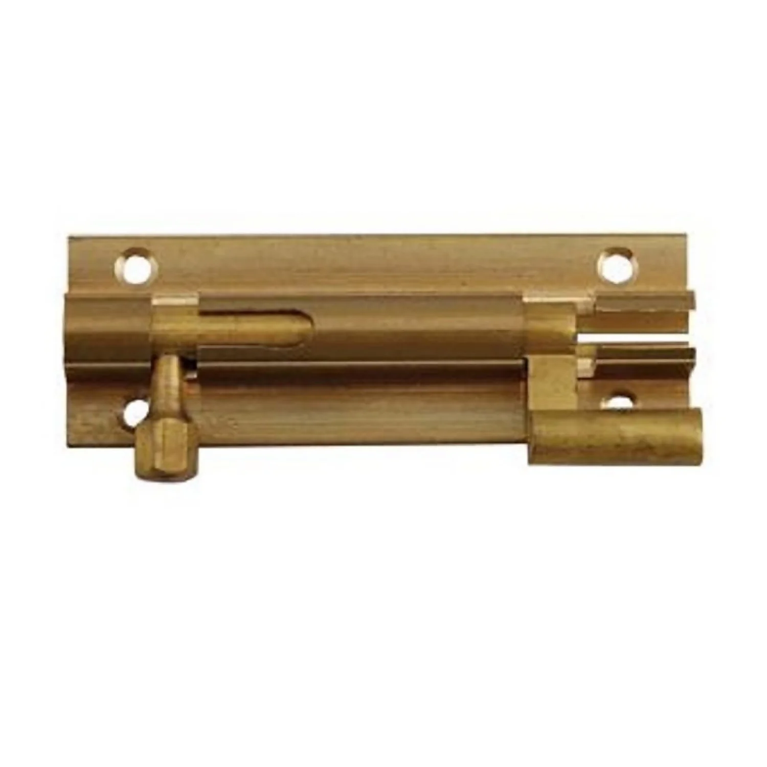 A brass effect 76mm barrel necked bolt for securing door to frame or floor.