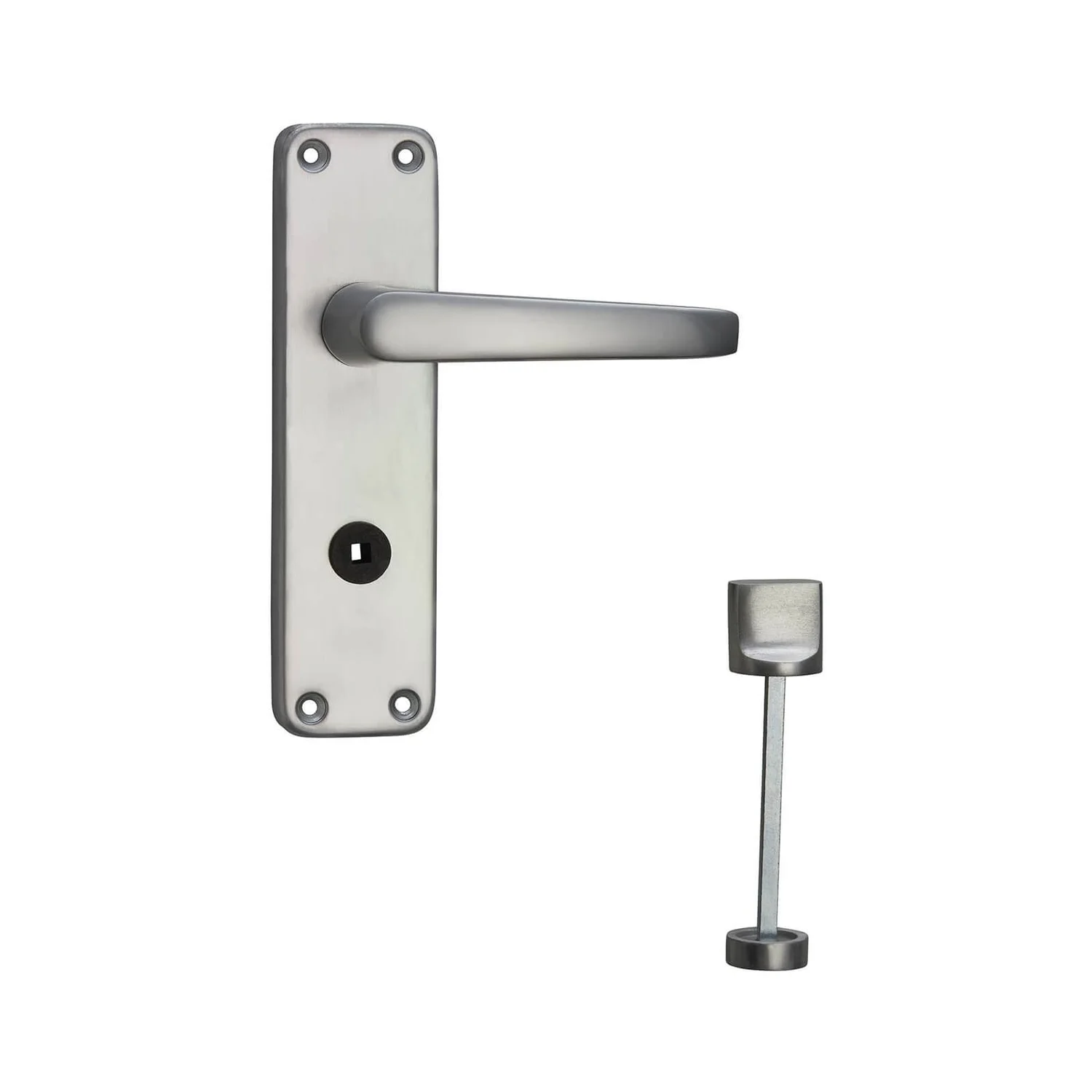 None Homebuild Long Backplate Privacy Lever Set – Brushed Aluminium