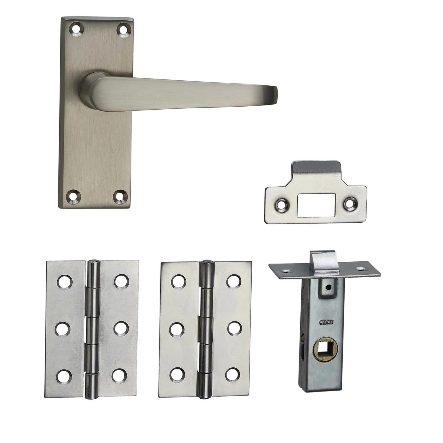 None Homebuild Victorian Straight Short Backplate Internal Door Pack – Brushed Nickel