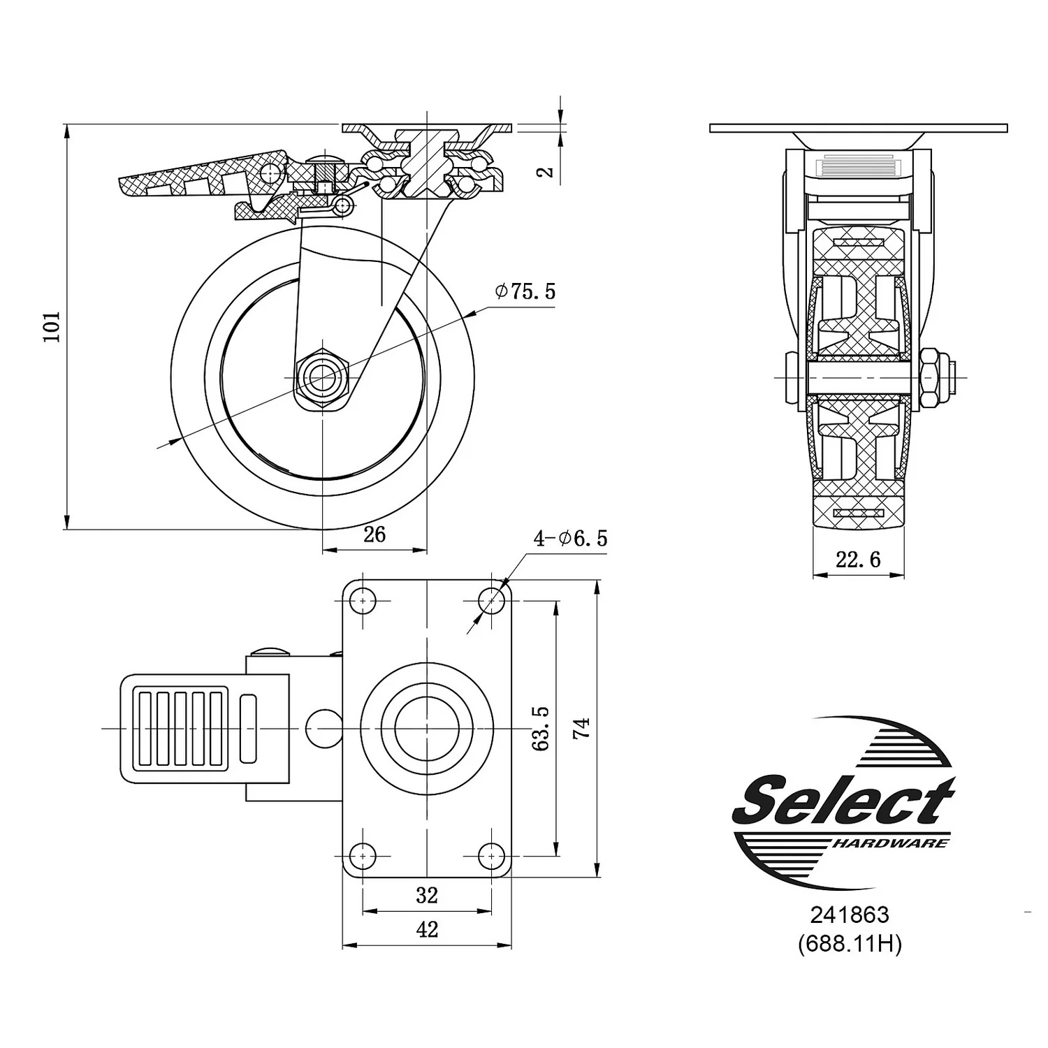 Be the first to review “None Plate Castor With Brake 75mm – 1 Pack” Cancel reply