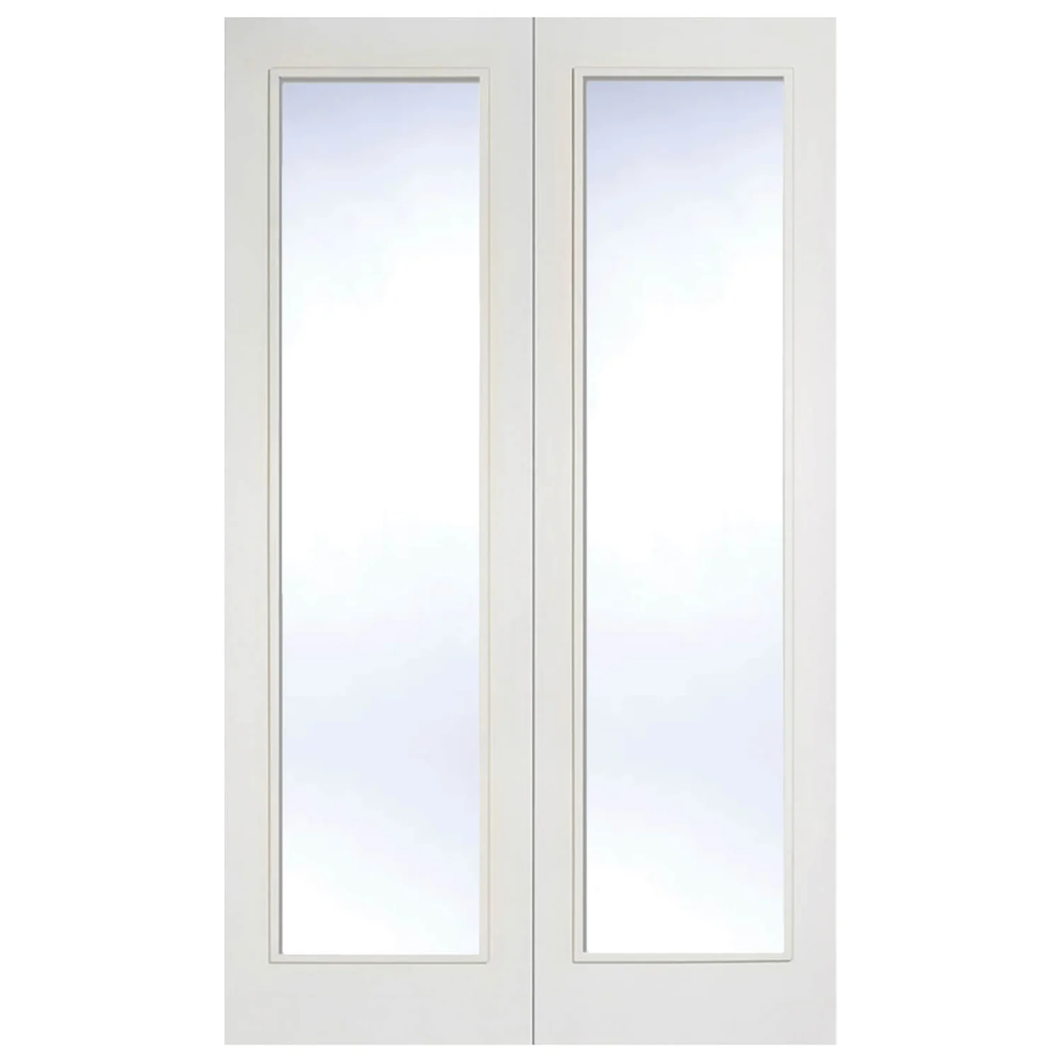 These simple internal French doors blend style with practicality. With sleek frames and two large clear glazed panels, they will carry the light between rooms. The frames are primed and ready for a topcoat. These double doors are an ideal way to create an illusion of space, so you can channel the popular open plan look, but have the option to create different zones.