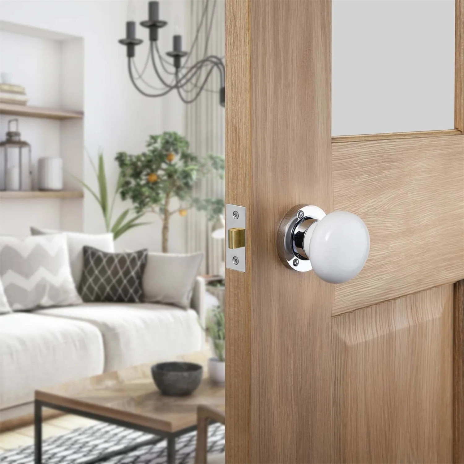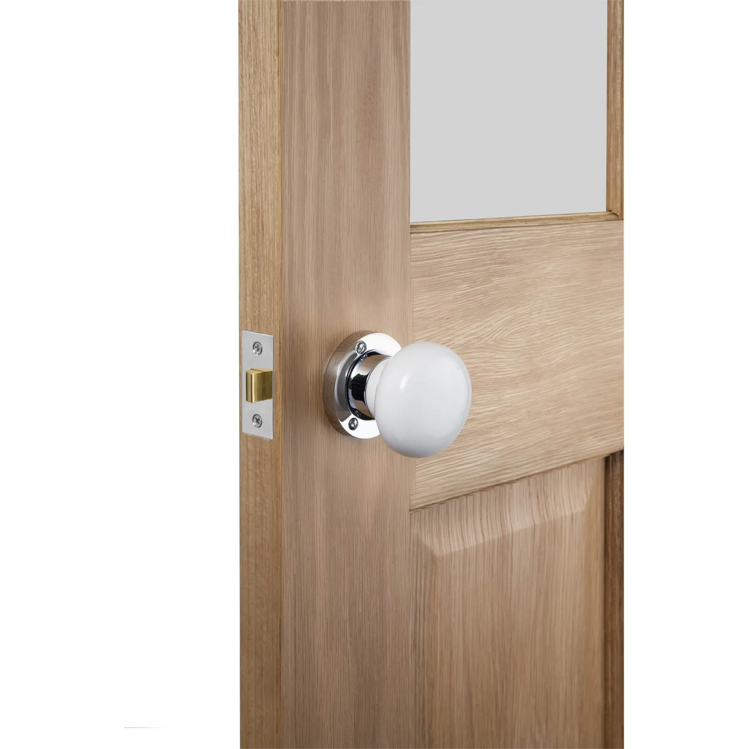 Mortice Knob Set – Typically, more traditional in style, mortice doorknobs are mounted on a round rose and are suitable for all door types. They can be used on their own, for regular passage doors, or can be combined with locking or bathroom escutcheons if security/privacy is required.