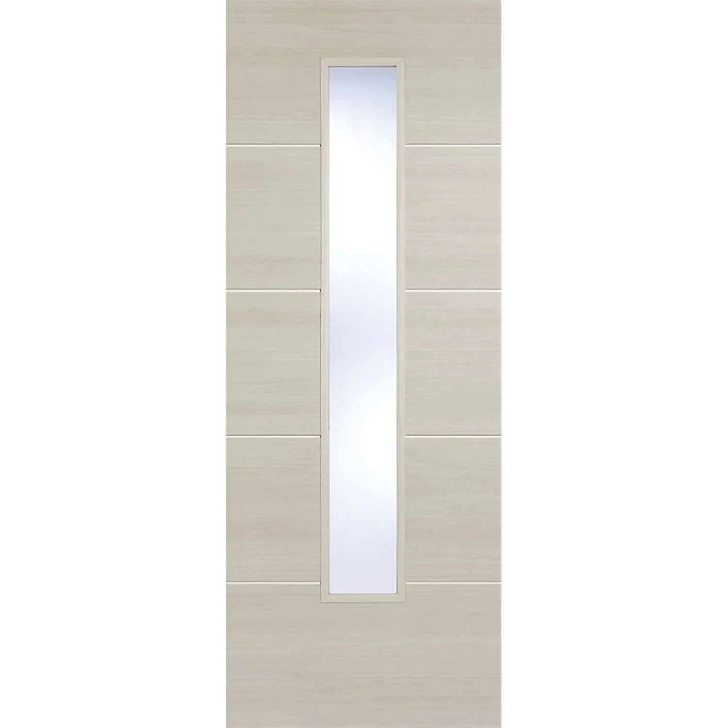 A contemporary glazed laminated internal door in on-trend ivory, the Santandor features a slim, vertical panel with clear glazing. A great way to let light into a room, it’s a perfect choice for your living space where privacy is not an issue. A cost-effective choice, the beauty of the laminated finish is that it gives you the look of a real veneer without the variations in colour that you might see in natural wood.