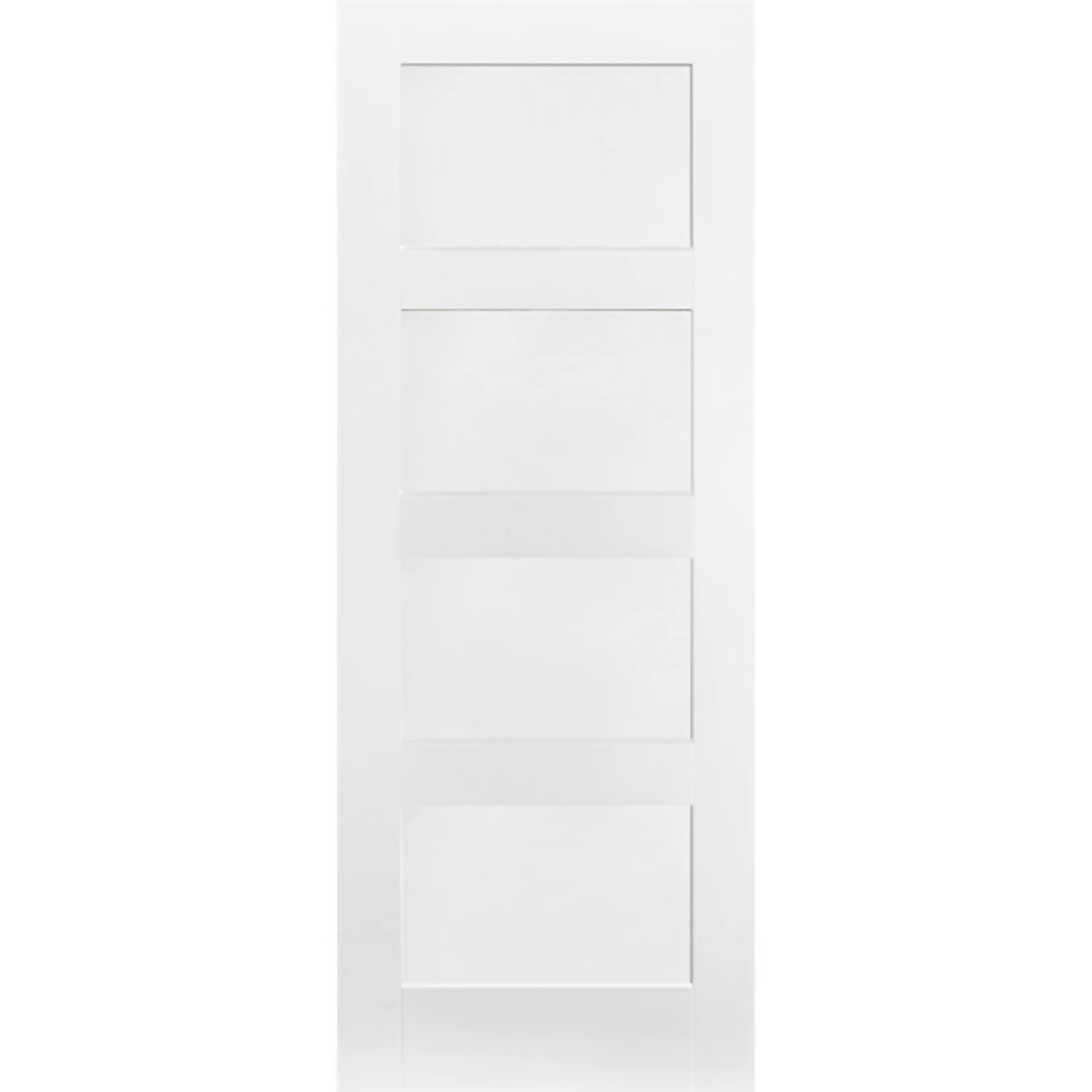 An elegant white door for a timeless interior, with four equal sized panels for a sophisticated edge. Inspired by Shaker styling, this door offers versatility to slot into almost any space. The finish is primed so you can choose the final look, and ensure it blends in with the decor around it. This door is suited to almost any room in a house, so you can hang it in a bedroom, en suite, dining room, study or lounge and know that you’ve got the look just right.