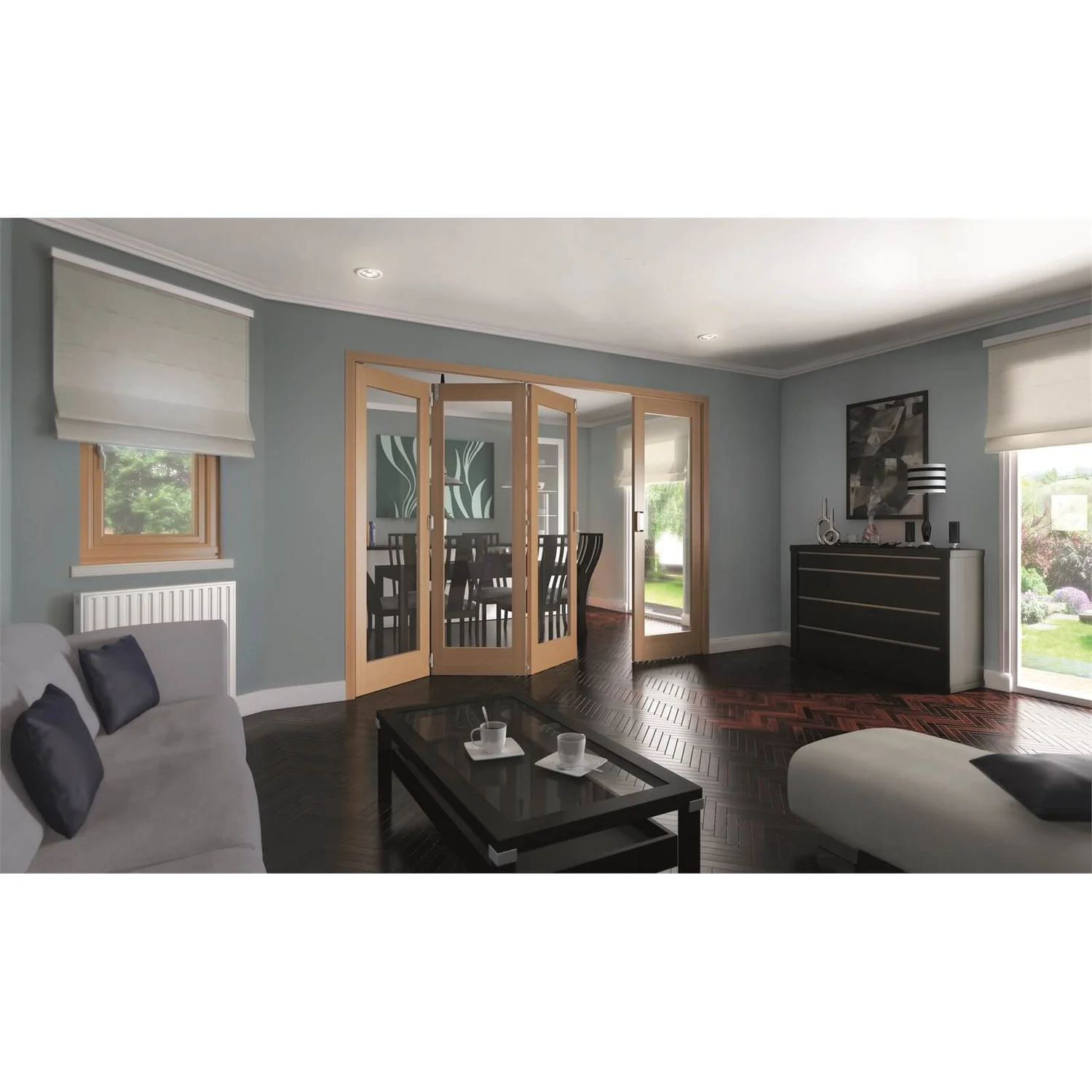 Shaker Oak 1 Light Clear Glazed Interior Folding Doors 3 X 1 2047 X 2849mm