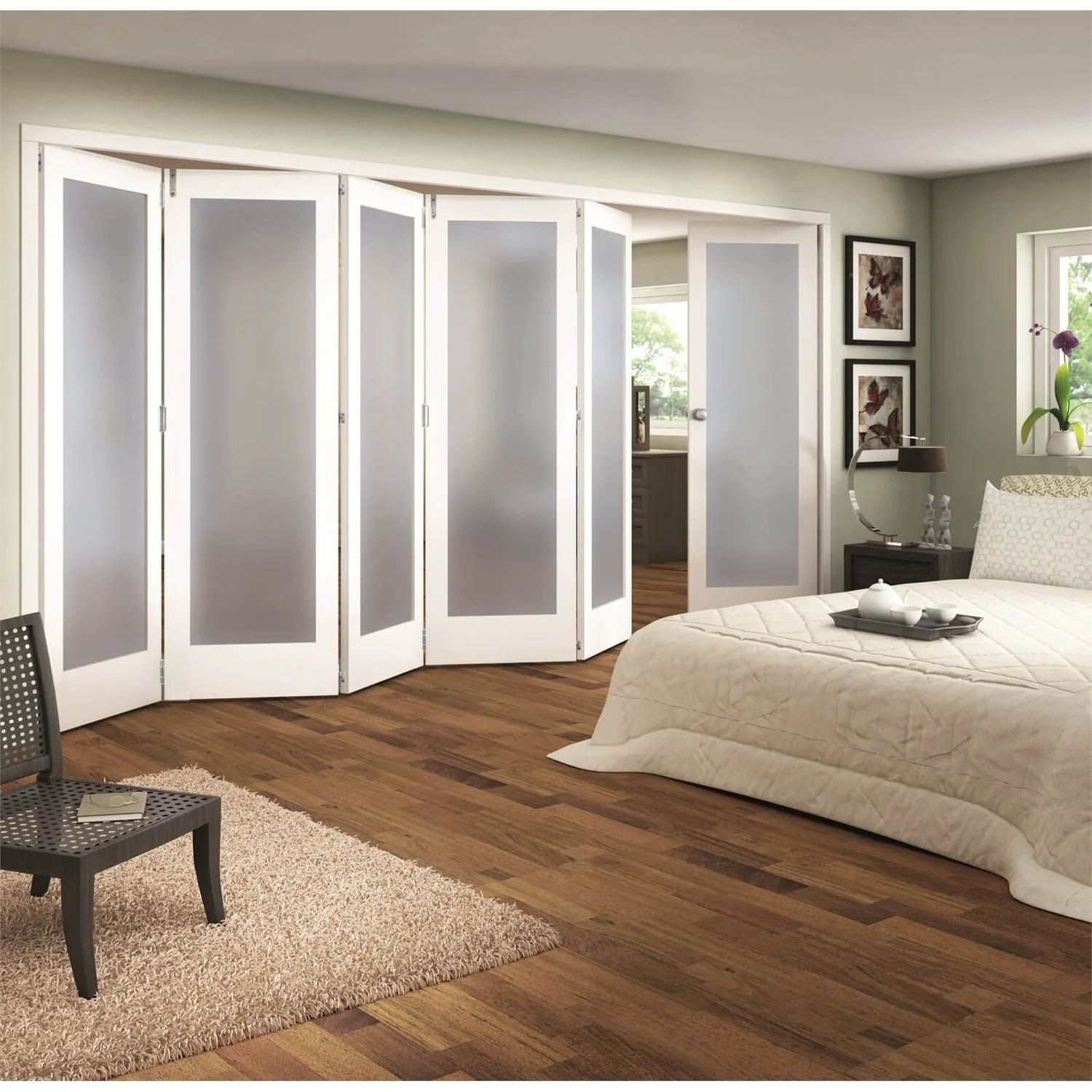 The Room Fold Shaker Primed 1 Light Obscure Glazed is a stylish, high quality folding door system that provides the option of turning two rooms into one. It is top hung with high quality brushed stainless steel hardware and no bottom track, meaning quicker installation and uninterrupted flooring from room to room. Supplied with a primed softwood frame ready for site decoration. Ready for installation with a frame pack, hardware pack and door pack.
