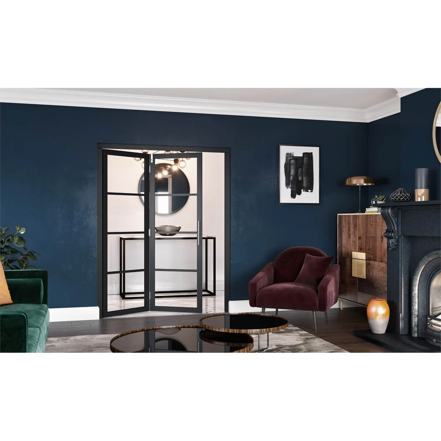 Slim-line Black 4 Light Clear Glazed Room Divider 2+0