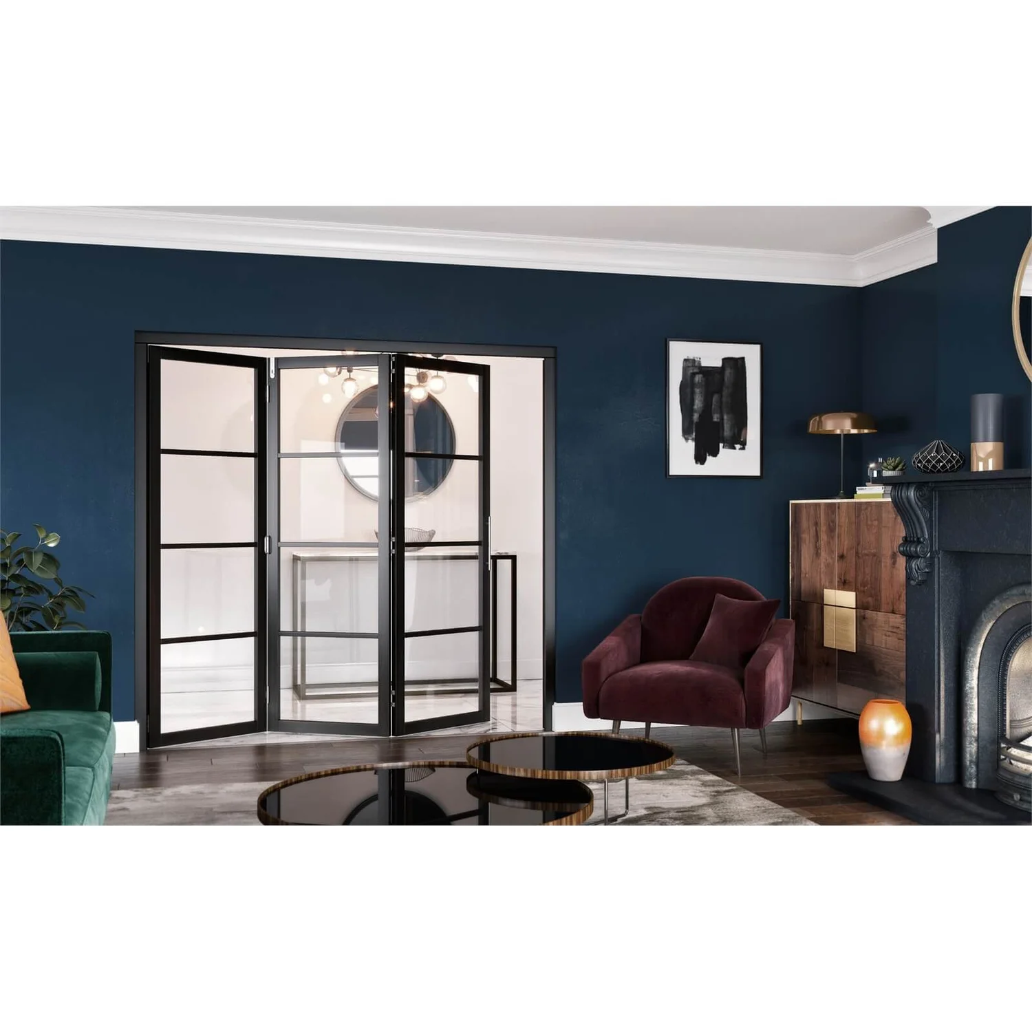 The Slim-line room divider combines a stylish slim timber frame with an expanse of glazing panels allowing light to flood into a room. Its striking black paint finish means this door is guaranteed to attract attention.