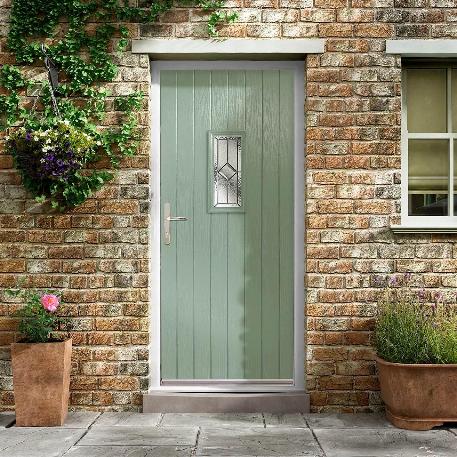 In a classic shade of Chartwell Gareen, this glazed composite door set will update the look and feel of your home effortlessly. The Speedwell blends elegant style with durability and warmth for a property update you’ll enjoy for years. It offers a traditional look, with slim vertical panels inset with a single, rectangular, lead double glazed panel.