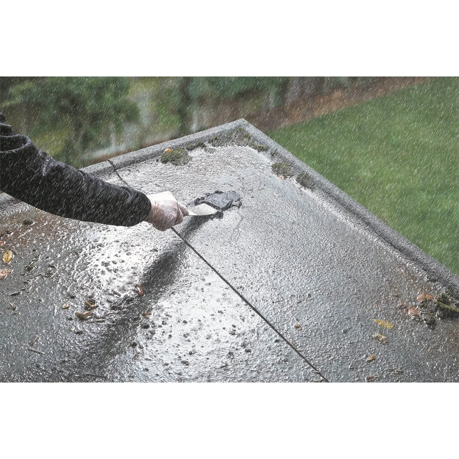 With added fibres and a high solids content Thompson’s Emergency Roof Repair Mastic has been developed for filling, plugging and repairing cracks and splits, targeting leaks at the source of the problem. It can be applied to all roofing materials and can be used under ponding water or in rain showers and provides an immediate repair.