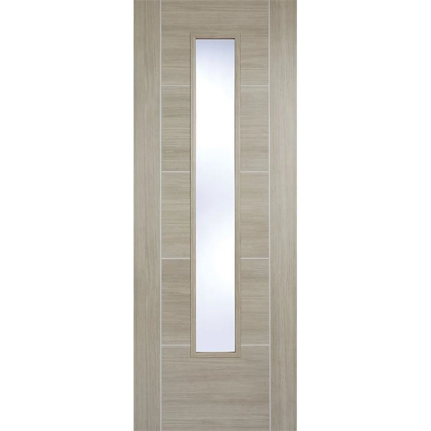 A glazed laminated internal door in on-trend light grey with sought-after five-panel styling. The Vancouver also features a slim, vertical, clear glazed panel so you ensure rooms stay bright, even if they lack in natural light. Ideal for lounges, living rooms, dining rooms and studies, this a great value way for give your home a modern look. The beauty of the laminated finish is that it gives you the look of a real veneer without the colour variations of natural wood.
