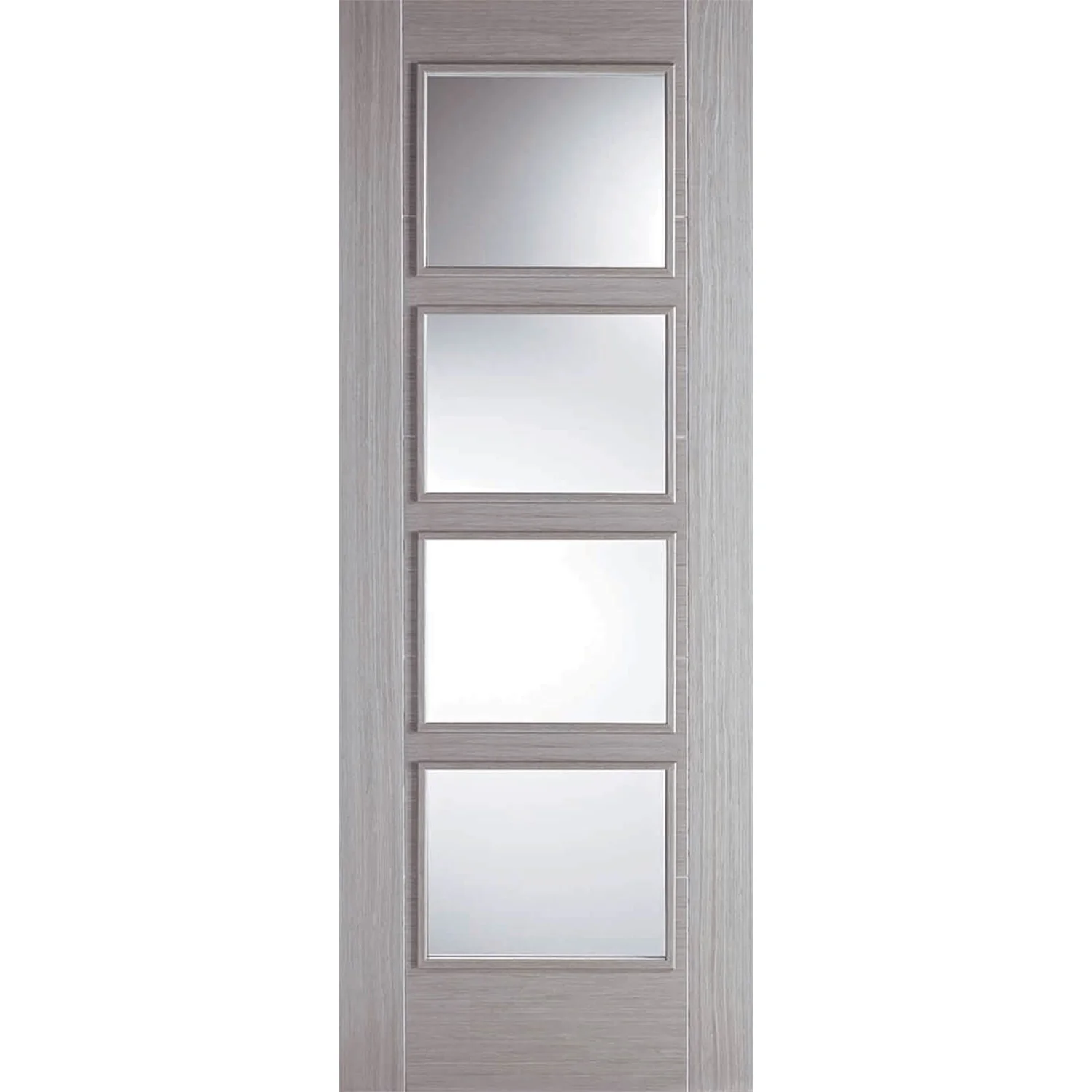 A modern internal glazed door with sleek, contemporary look, Vancouver comes in light grey to complement fashionable of interiors. With four large clear glazed panels, the look is kept light and airy, so you can fit this door to your living space and create an open and spacious feeling. This door makes the perfect choice for a dining room or study.
