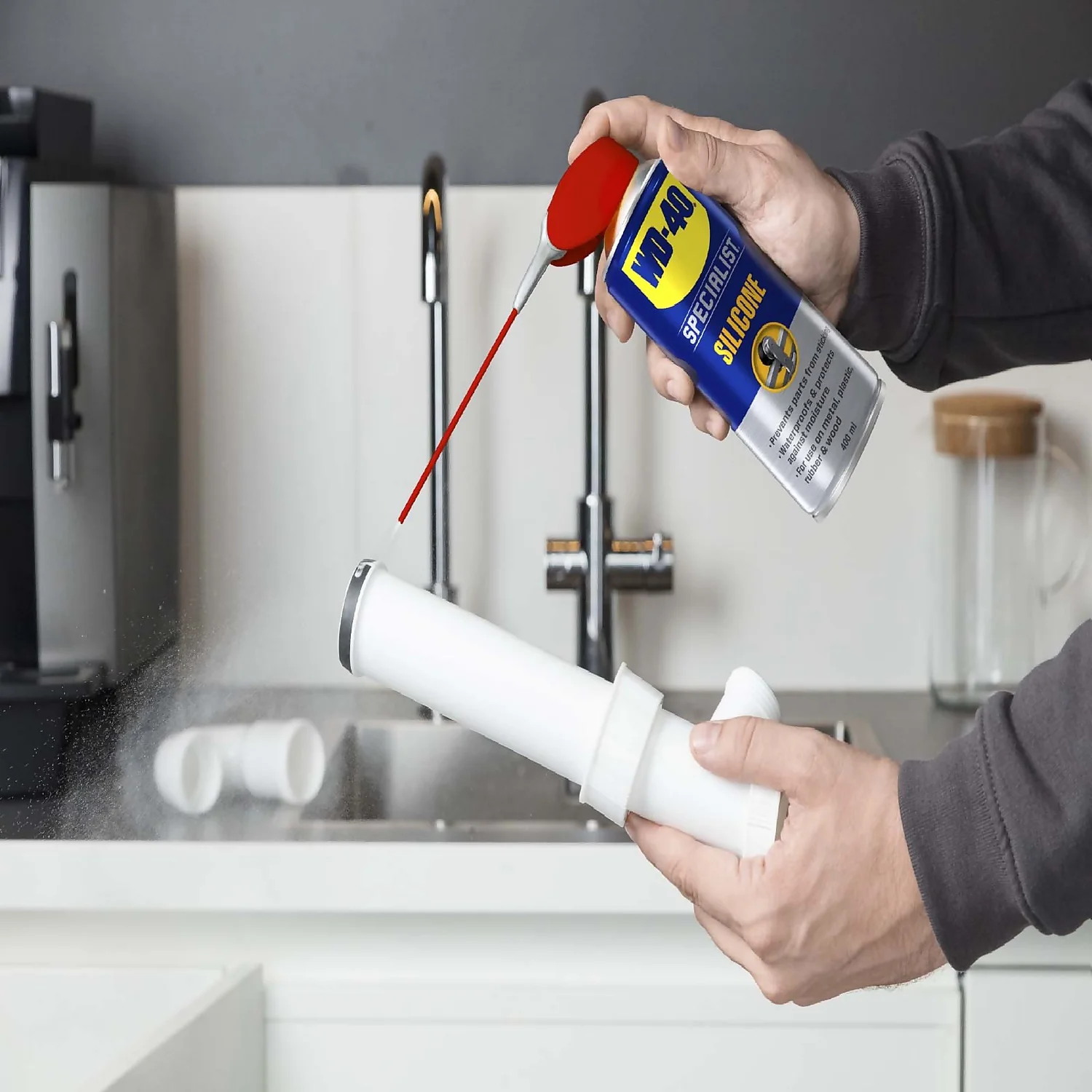 Prevents cracking, splitting or ageing of rubber and plastic parts and surfaces to keep them looking like new. WD-40 Specialist Silicone spray also provides superior lubrication to reduce any sticking, friction or wear on moving components. It provides excellent waterproofing and protection against moisture and repels any dust or dirt with its fast-drying, clear and non-staining film.