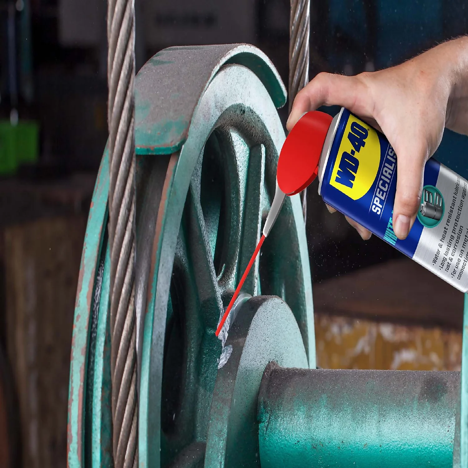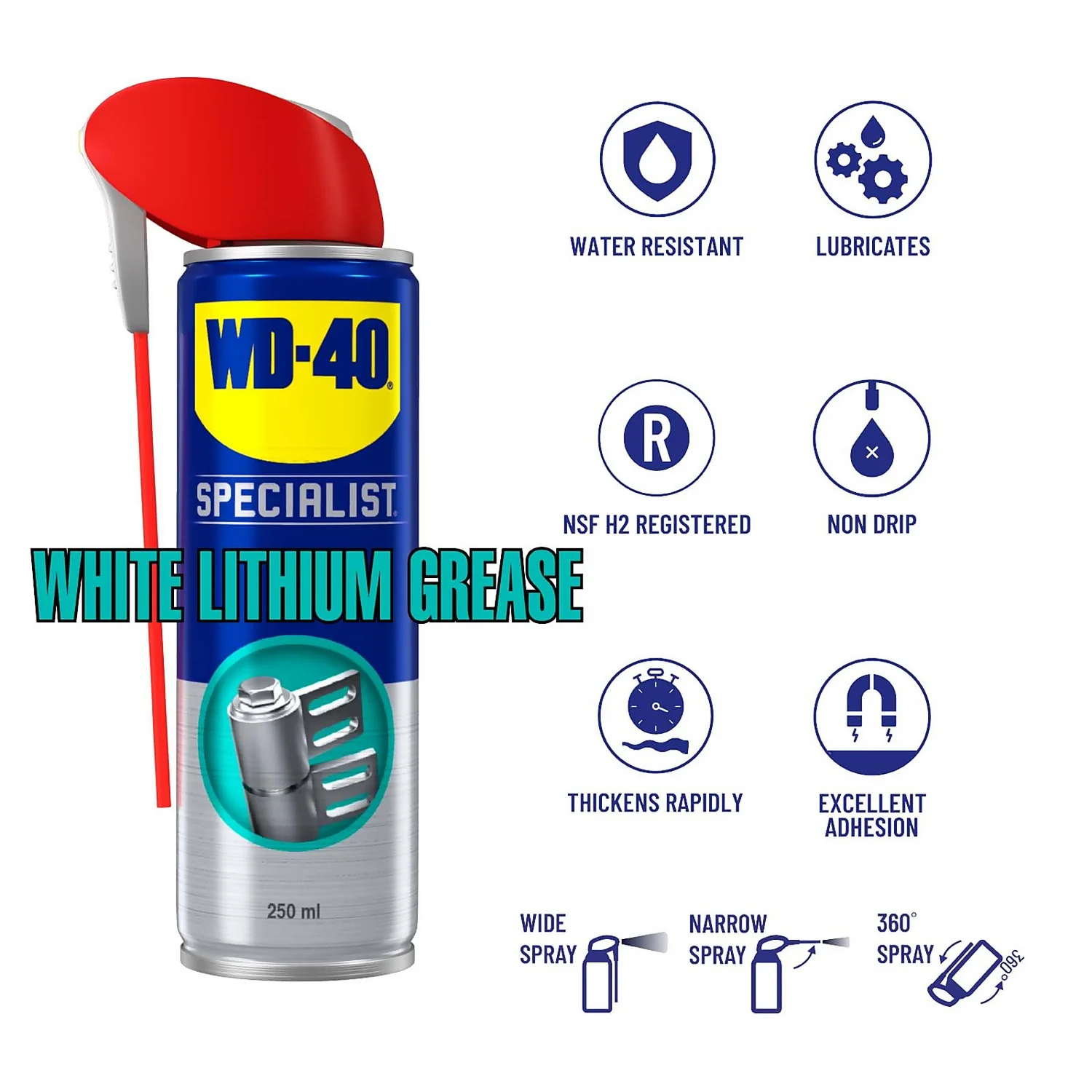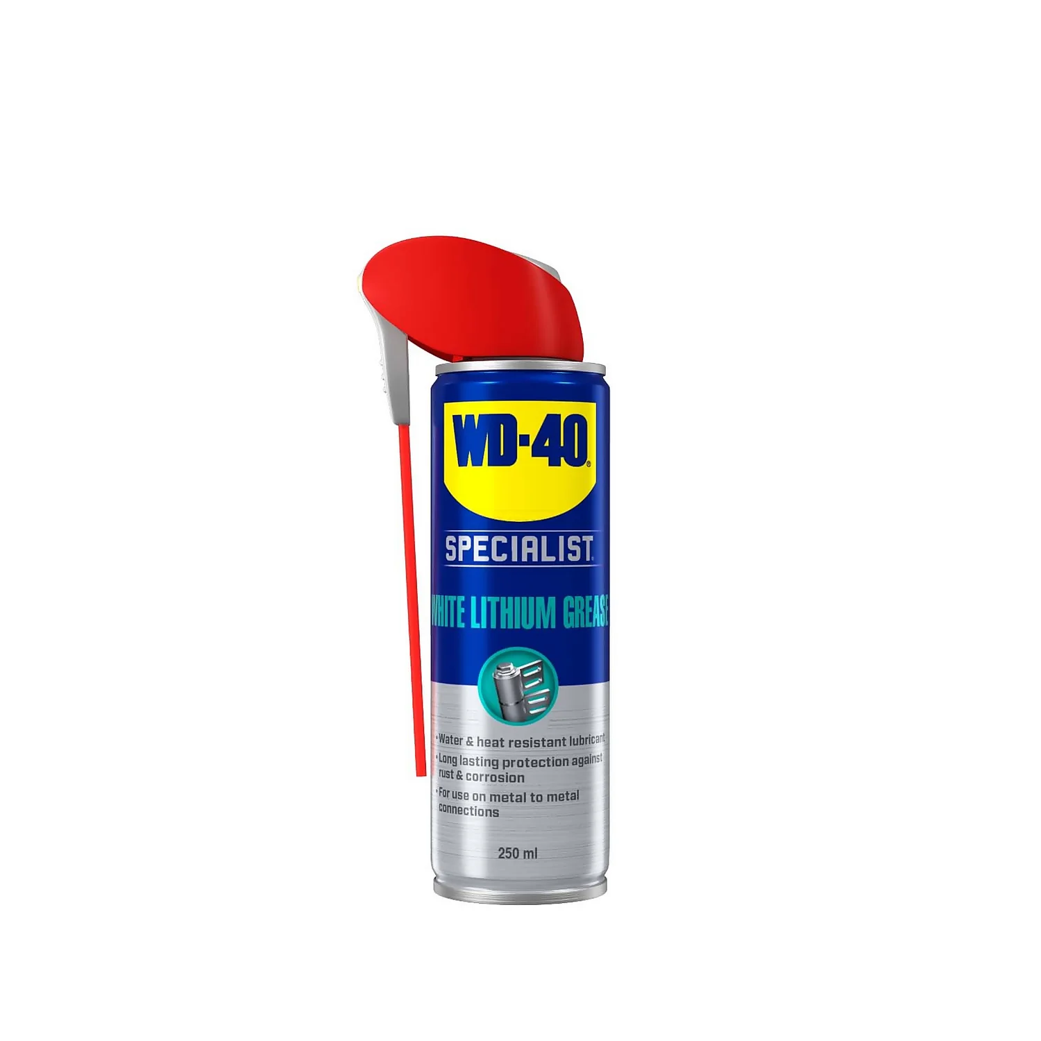 Works quickly to reduce friction and wear on parts where there is heavy metal-on-metal contact. WD-40 Specialist White Lithium Grease is easily applied, leaving a handy white film for application visibility. It provides long-lasting lubrication to keep components moving smoothly, and a protective barrier to prevent rust or corrosion forming. Ideal for both indoor and outdoor use, and all weather conditions thanks to the thick, non-drip, water-resistant formula.