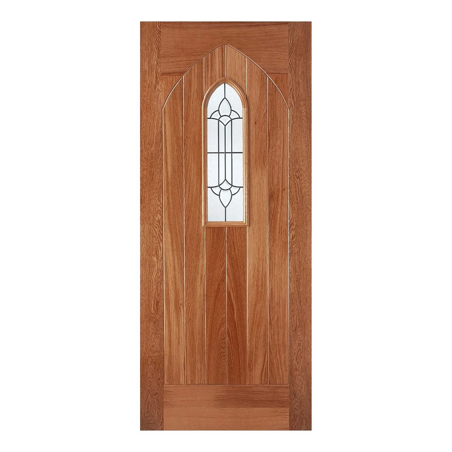 Crafted from quality hardwood, the Westminster is an imposing external door with a charming leaded double glazed panel and curved top. It also features mortice and tenon joints which give it a more traditional look as well as providing a more solid door construction.